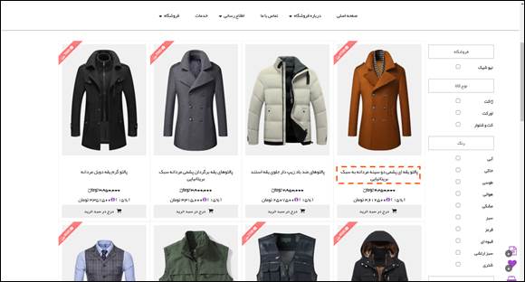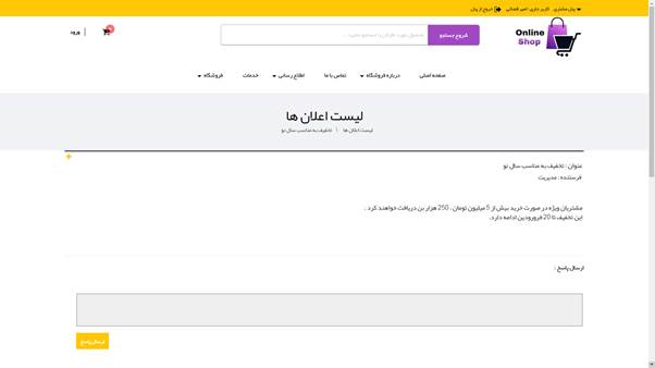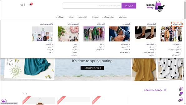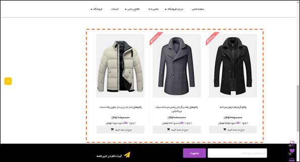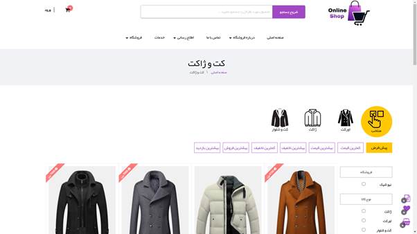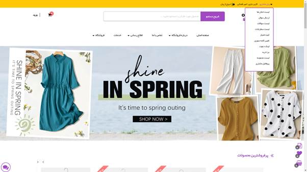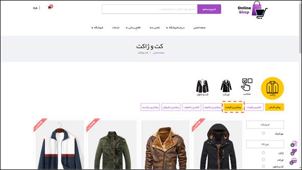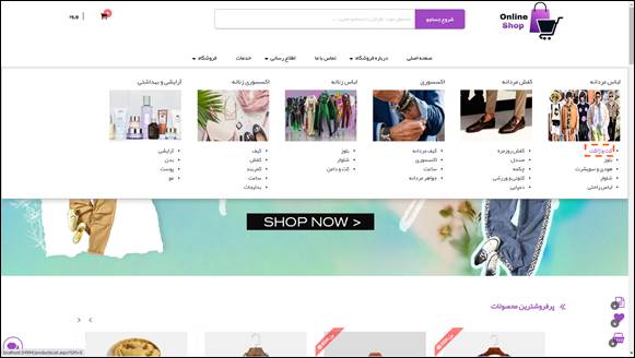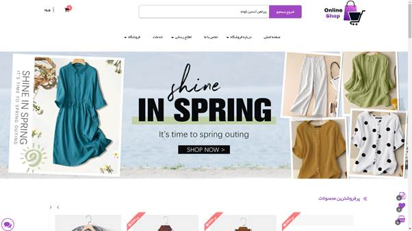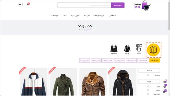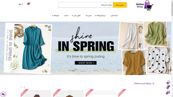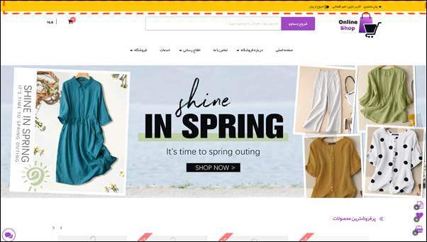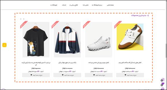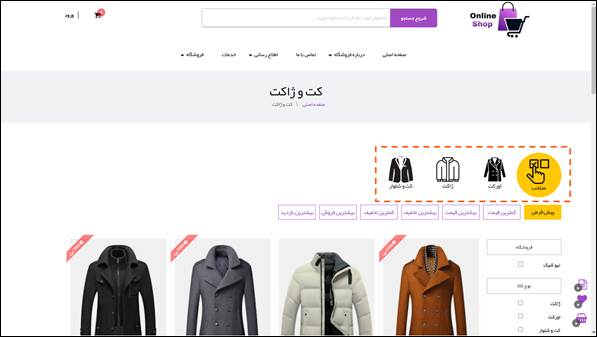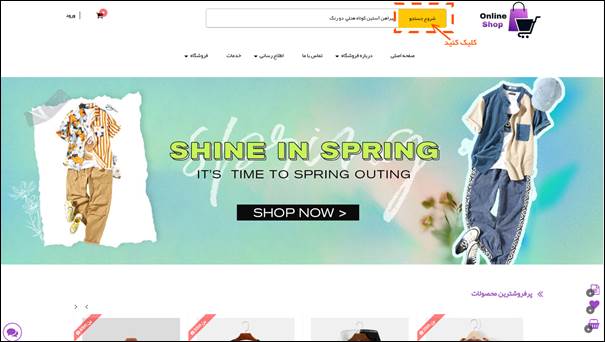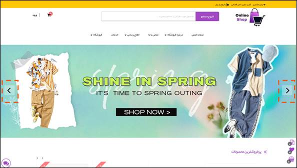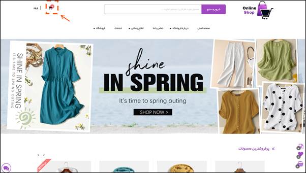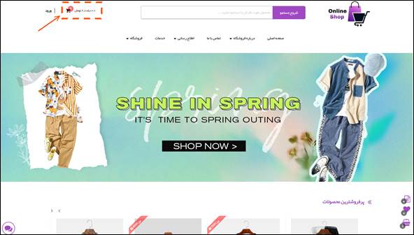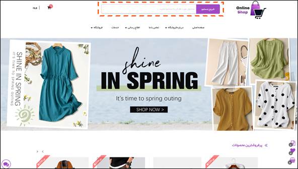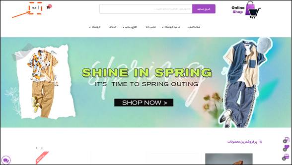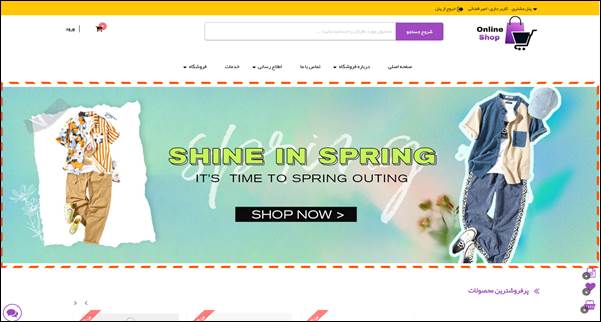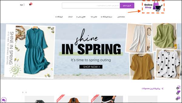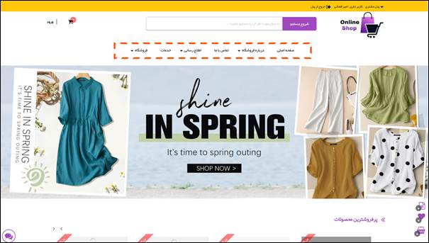 اصلی فروشگاه در بالای سایت نمایش داده می شود و