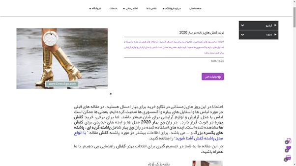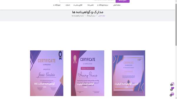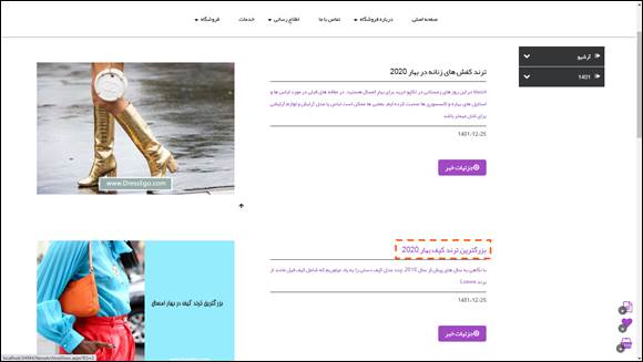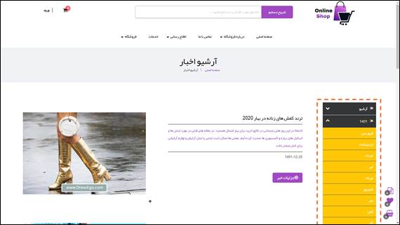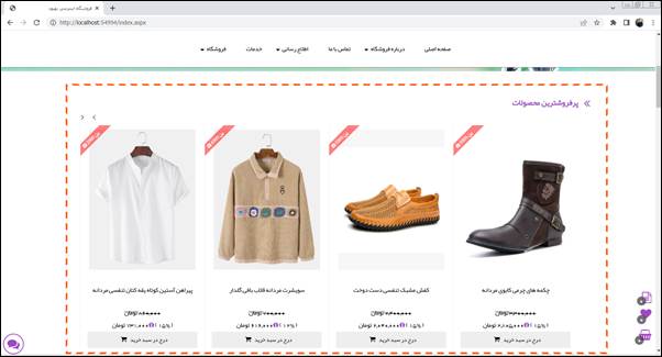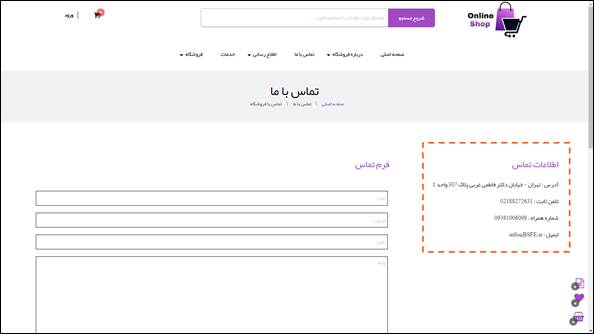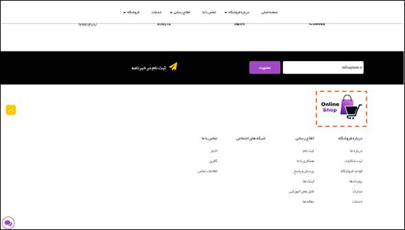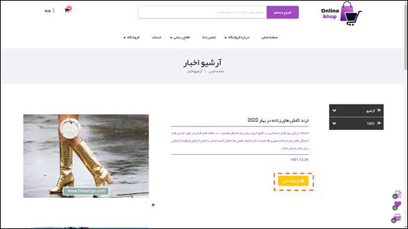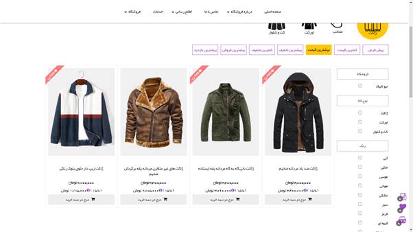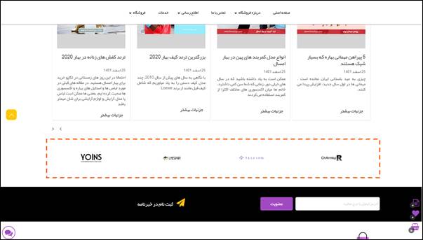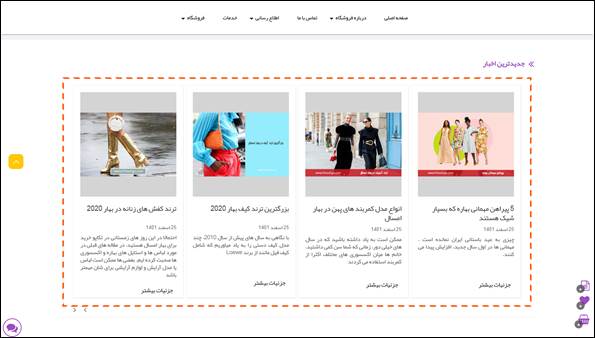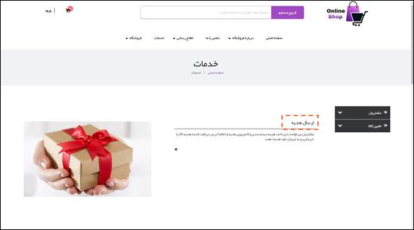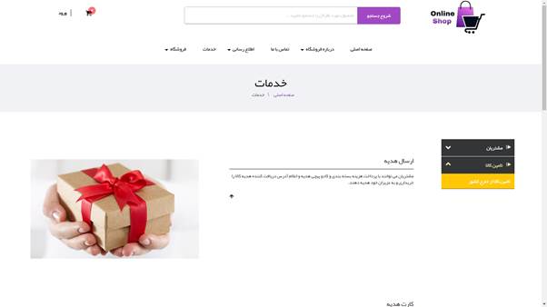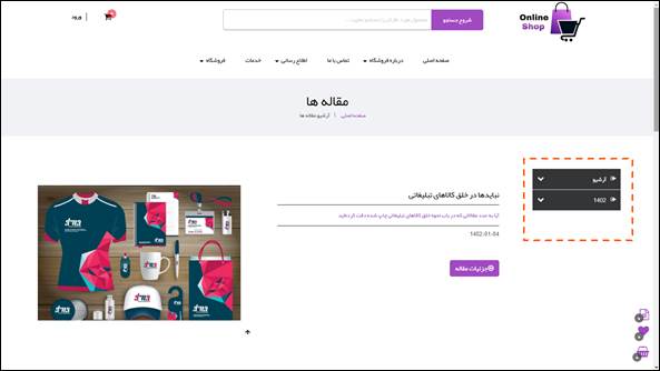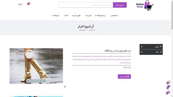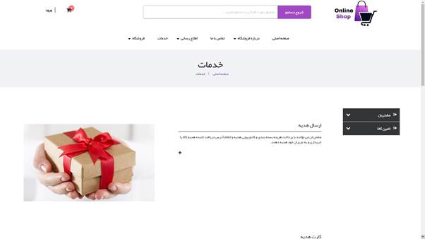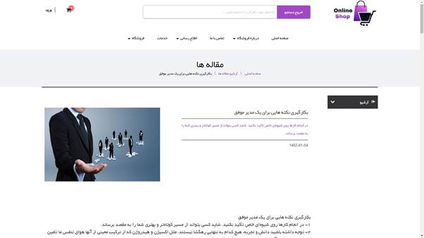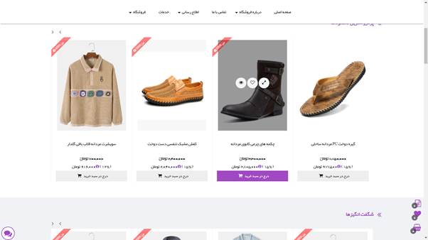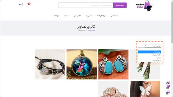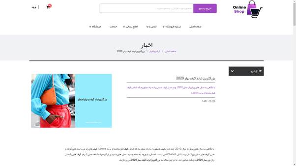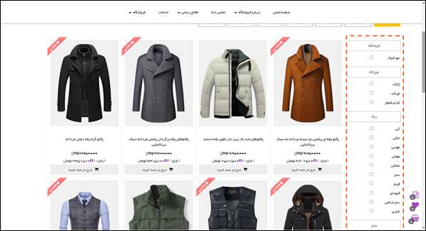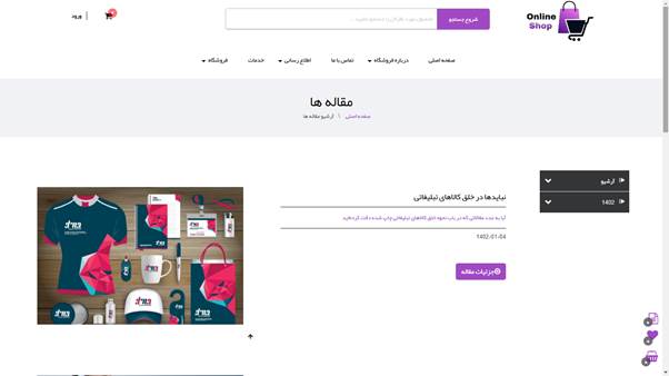 اصلی فروشگاه در بالای سایت نمایش داده می شود و