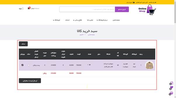 با کلیک روی آیکون سبد خرید ، وارد سبد خرید کالا