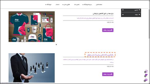 کننده وب سایت با کلیک روی لوگو سایت در صفحات مختلف وارد