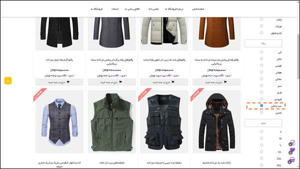بازدیدکننده فروشگاه می تواند وارد گزینه های این