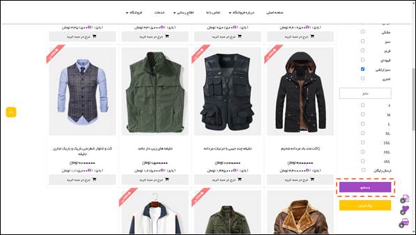 روی دکمه شروع جستجو نتایج جستجو که کالاهایی است که منطبق بر نتایج جستجو شما است