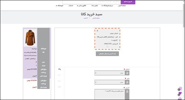 می تواند ، در آخرین مرحله تکمیل سفارش خود ، آدرسی که
