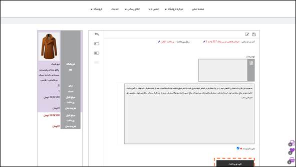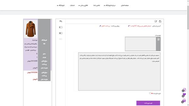 قبل از اتمام و ثبت سفارش باید قواعد و مقررات فروشگاه برای ارسال