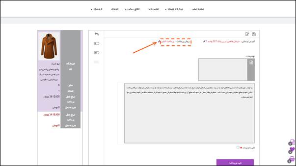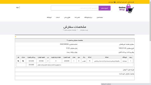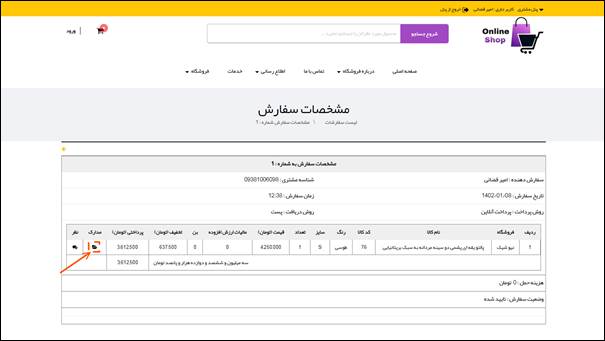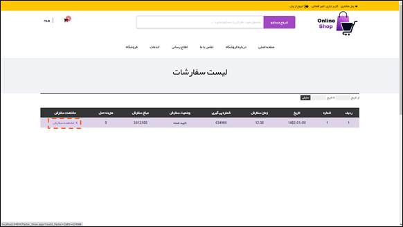 بعد از پرداخت آنلاین وارد بخش سفارشات می شود و سفارش خود را مشاهده