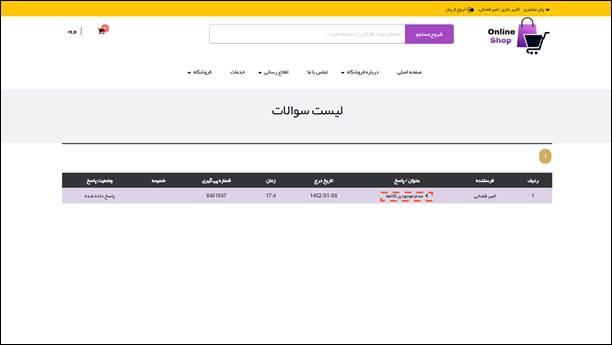 هایی که از فروشگاه داشته است را مشاهده می نماید.