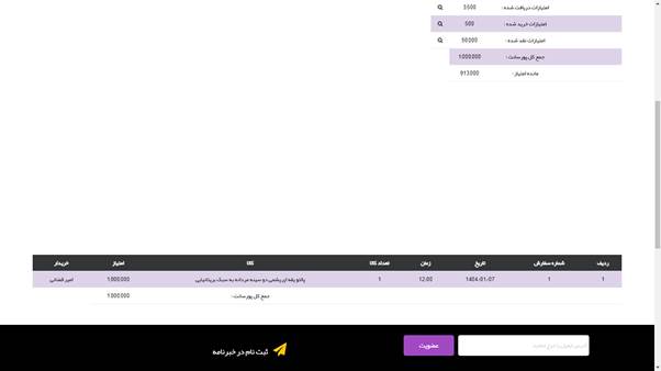 مانده امتیاز مشتری در باشگاه نمایش داده می شود.