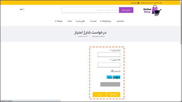 نقدی از طریق درگاه بانکی اقدام به افزایش موجودی