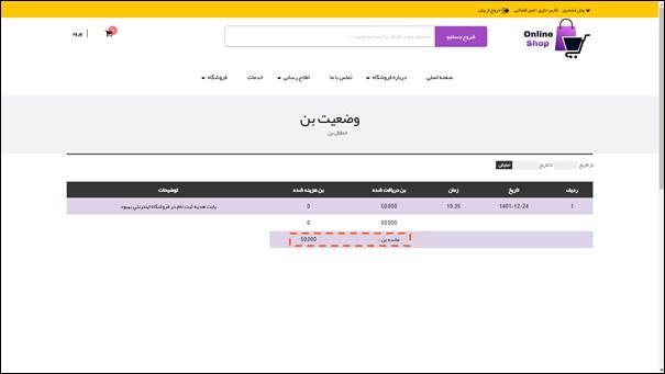 تواند مانده بن خود را در انتهای لیست مشاهده نماید.